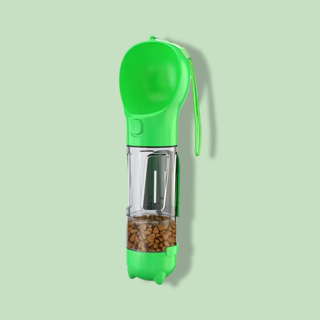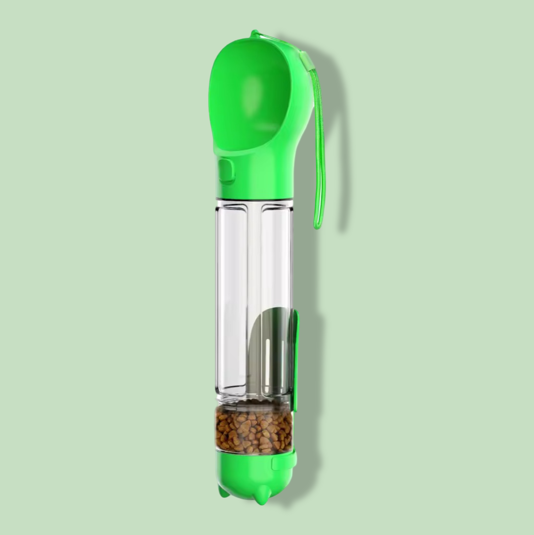 La gourde nomade multifonctions est livrée avec un distributeur d'eau intégré, un conteneur de nourriture selon vos options choisies, une pelle à crottes et un rouleau de sacs à déjections. Vous avez tout ce dont vous avez besoin pour hydrater, nourrir et nettoyer votre animal en toute simplicité.